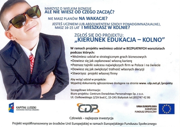 Osoby chcące wziąć udział w projekcie "Kierunek Edukacja- Kolno" proszone są o zgłaszanie się do pedagoga szkolnego p. Barbary Łempio.
