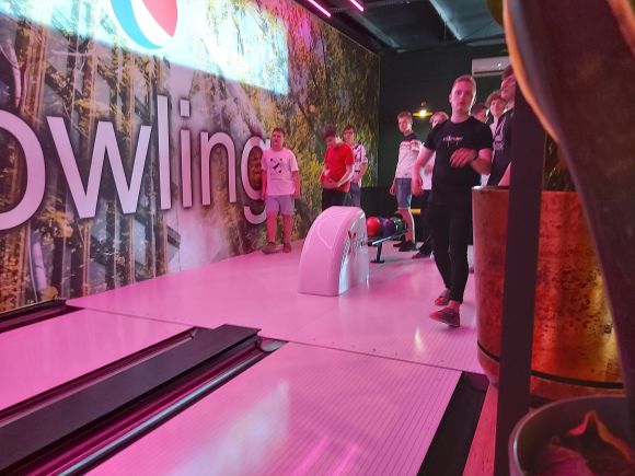 Uczniowie aktywnie spędzili czas na dobrej zabawie korzystając z kręgielni, stołu do bilardu oraz z trampolin i zjeżdżalni.