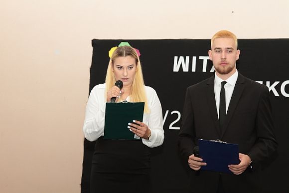 Prowadzący przywitali wszystkich zgromadzonych, nie zabrakło też wzmianki o wakacjach oraz życzeń udanego roku szkolnego dla wszystkich uczniów i nauczycieli.
