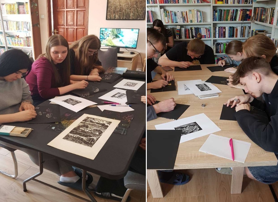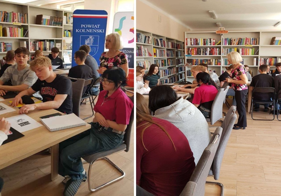 26 maja 2025r. uczniowie klasy 4TEZespołu Szkół T w Kolnie, pod opieką p. Doroty Mroczkowskiej i Ewy Wróblewskiej,udali się do Powiatowej Biblioteki Publicznej, gdzie uczestniczyli w warsztatach tworzenia linorytów. Młodzież z ogromnym zaangażowaniem przystąpiła do wykonywania prac i bardzo dobrze się podczas tych zajęć bawiła. Uczniowie wysłuchali również prelekcji p. Marii Gawrysiuk na temat powstawania linorytów, które jednocześnie w czasie swojej wypowiedzi prezentowała.
