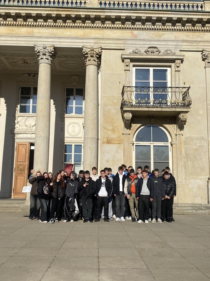 06 listopada klasy: 1TME, 2 TMR i 4 TM pod opieką swoich wychowawców i pani bibliotekarki, wzięły udział w wycieczce do Warszawy. Wyjazd był pełen atrakcji i wrażeń. Na początku odwiedziliśmy escape room, gdzie w grupach rozwiązywaliśmy zagadki i współpracowaliśmy, by wydostać się z pokoju. Później spacerowaliśmy po parku Łazienkowskim, podziwiając piękne alejki i pałac na wodzie.