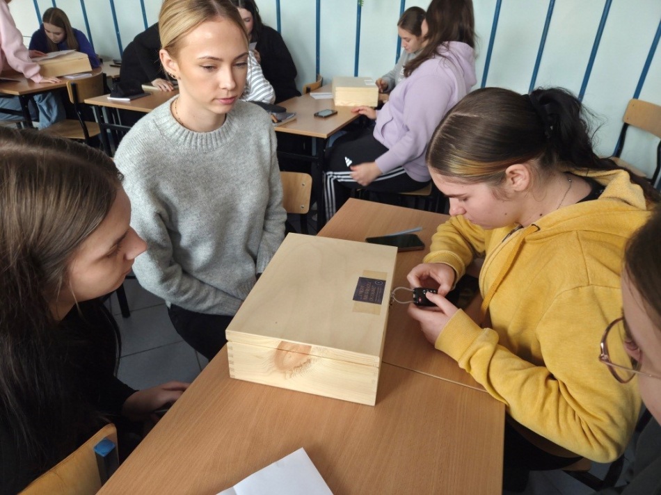 Po części teoretycznej uczniowie otrzymali zadanie odszyfrowywania kodów do skrzynek, w których znajdowały się dalsze instrukcje i informacje. Zadanie to okazało się wyzwaniem wymagającym skupienia i precyzji. Po prezentacji swoich dokonań uczniowie przystąpili do trzeciej części, w której rywalizujące ze sobą klasy odpowiadały na pytania prawda czy fałsz. Najlepsi uczniowie zostali nagrodzeni upominkami.