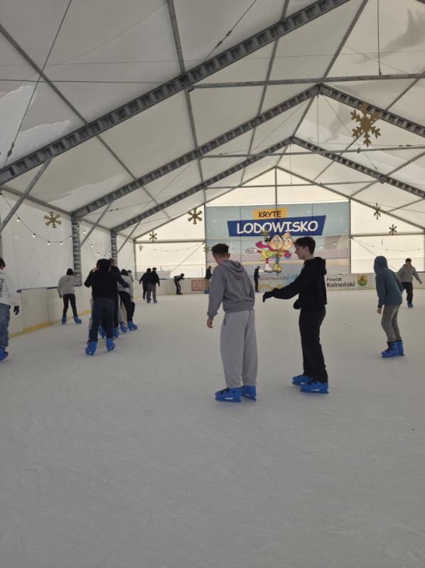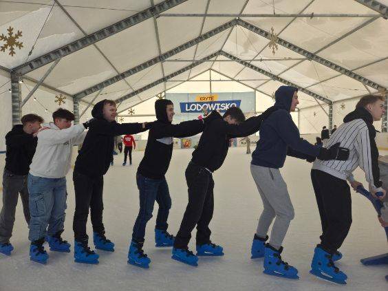 Dnia 20 lutego 2026 roku uczniowie klas 3 TEL i 1 TEL wraz z wychowawcami (K. Bazydło, D Mroczkowska) i panią Ewą Wróblewską udali się na lodowisko i do Green Factory w Kolnie.